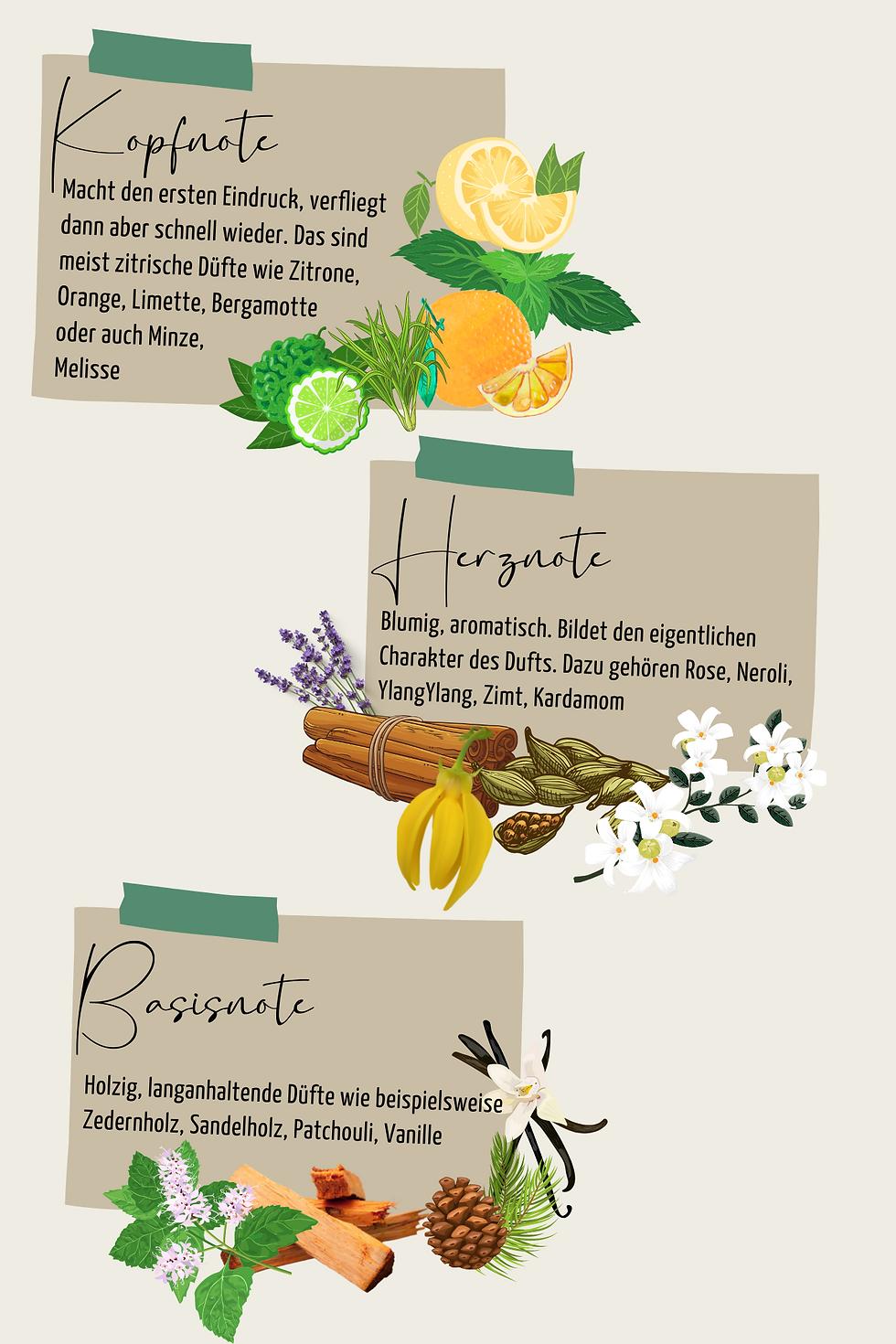 Grundlegend solltest du wissen, dass ein Duft wie folgt aufgebaut ist: